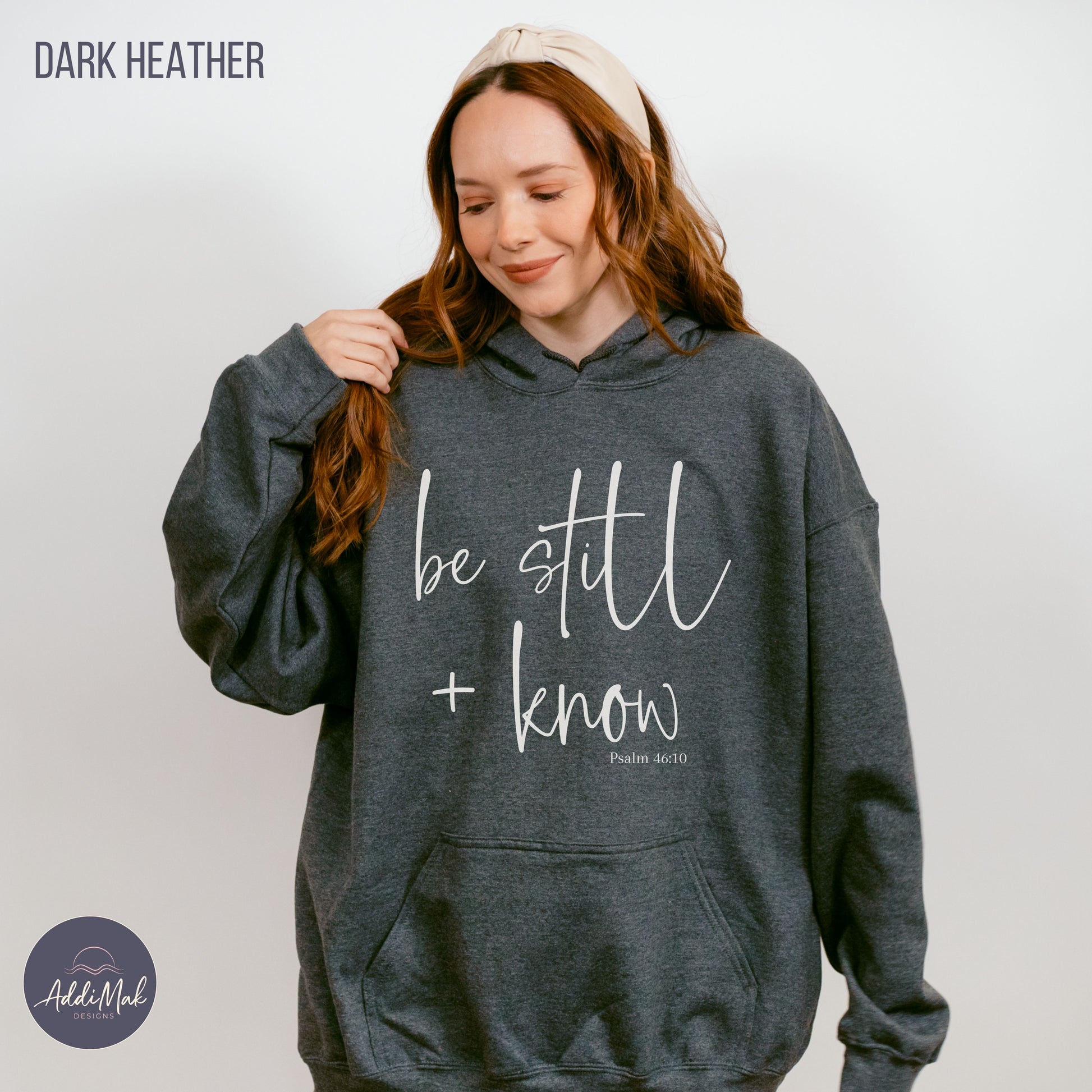 Find peace and comfort in style with our “Be Still + Know” Psalm 46:10 Christian Hoodie. This cozy faith-based sweatshirt is perfect for women, men, and teens who want to share their love of scripture while staying trendy and comfortable.