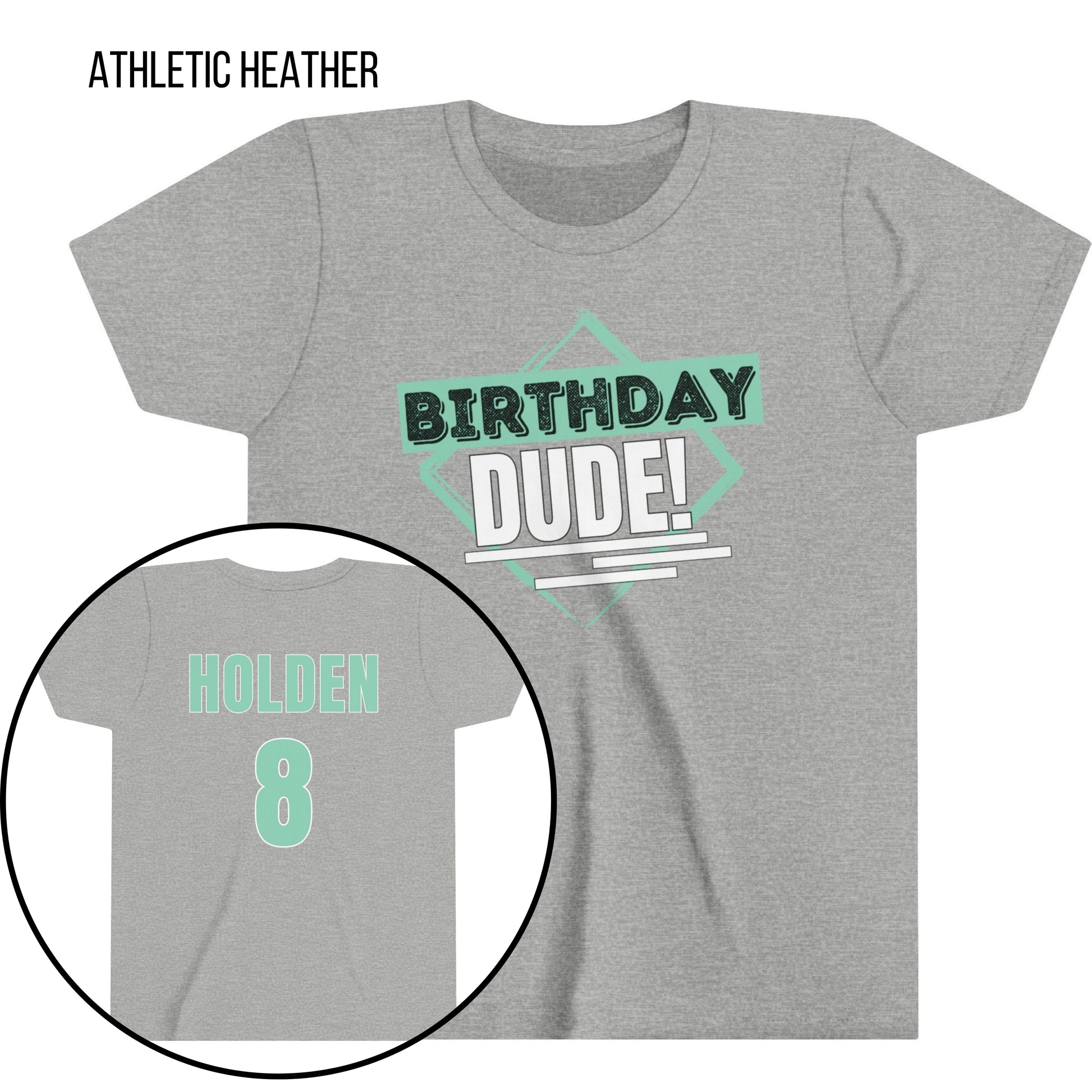 Celebrate the birthday boy in style with our "Birthday Dude!" youth t-shirt. This fun and vibrant tee feature bold lettering that exclaims the special occasion, making it the perfect attire for the coolest dude's birthday bash. Crafted with comfort and durability in mind, it ensures a memorable and enjoyable celebration for the birthday boy.