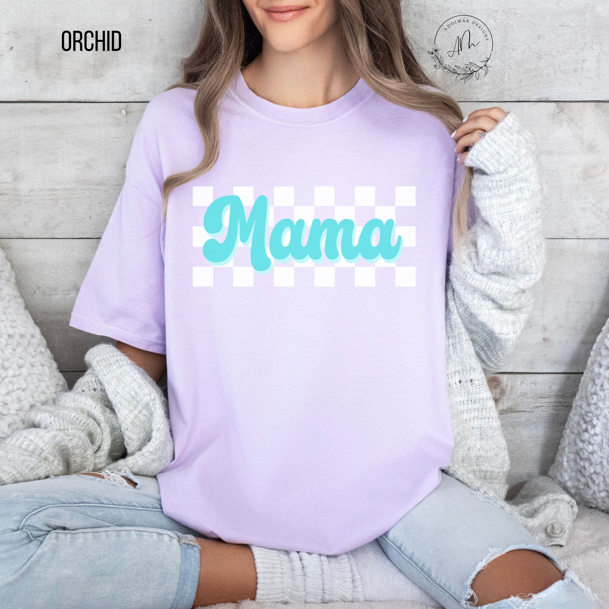 Introducing our retro-inspired checkered design tee with "Mama" elegantly scripted across the front. This nostalgic yet trendy piece adds a touch of vintage flair to any outfit, celebrating the timeless bond between mother and child. Crafted with premium materials for both style and comfort, it's the perfect choice for moms looking to make a chic statement with a hint of retro charm.