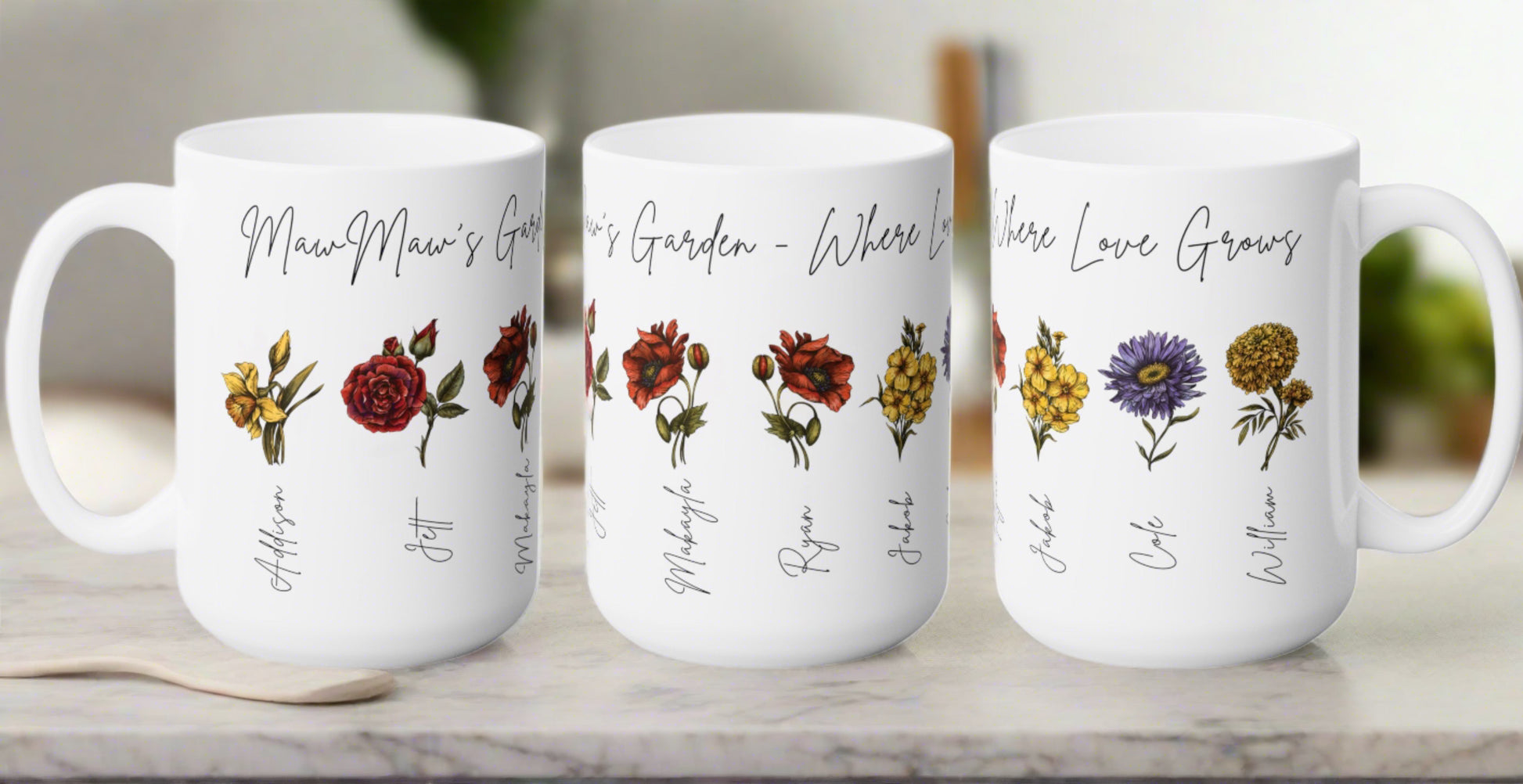 Custom Grandma's or Mom's Garden Birth Flower Coffee or Tea Mug