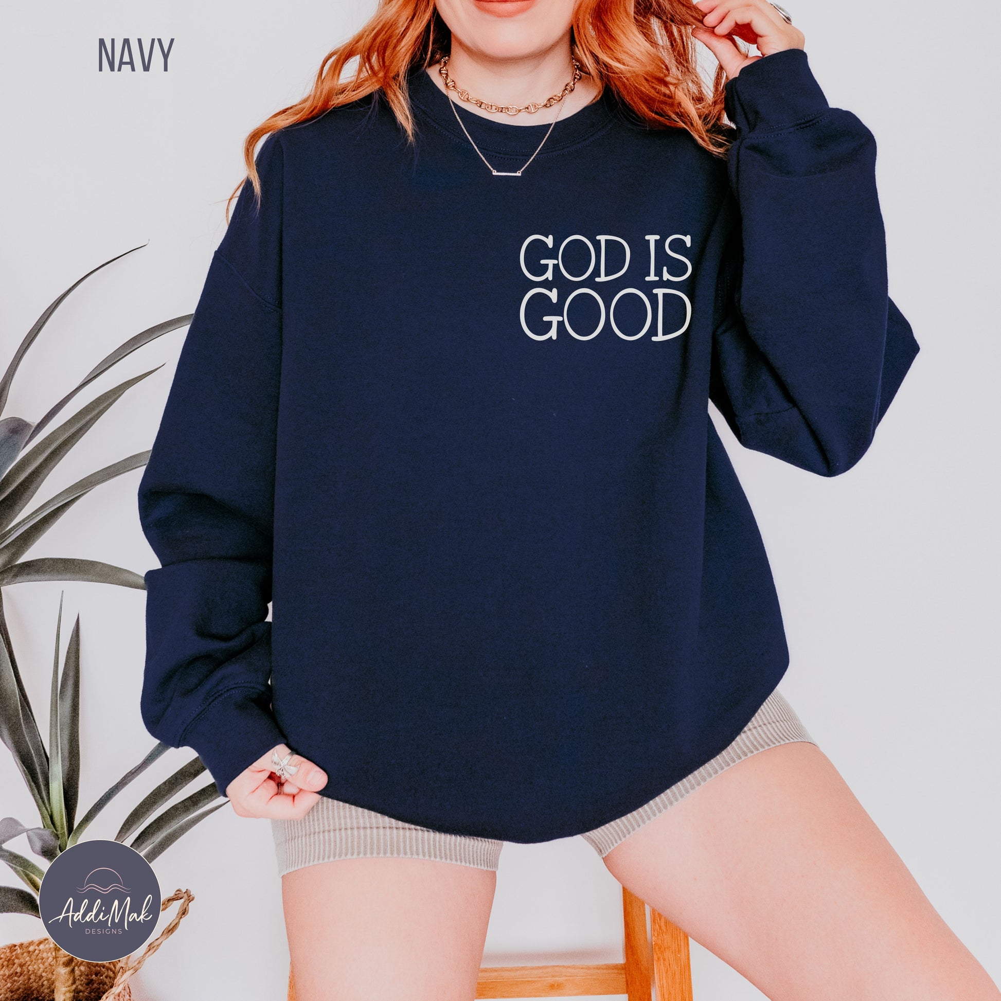 Introducing our “God Is Good” Minimalist Crewneck – a simple yet powerful statement of faith. This design features “God Is Good” printed in a timeless typewriter-style font on the upper left chest area, creating a subtle yet meaningful reminder of His goodness in everyday life.
