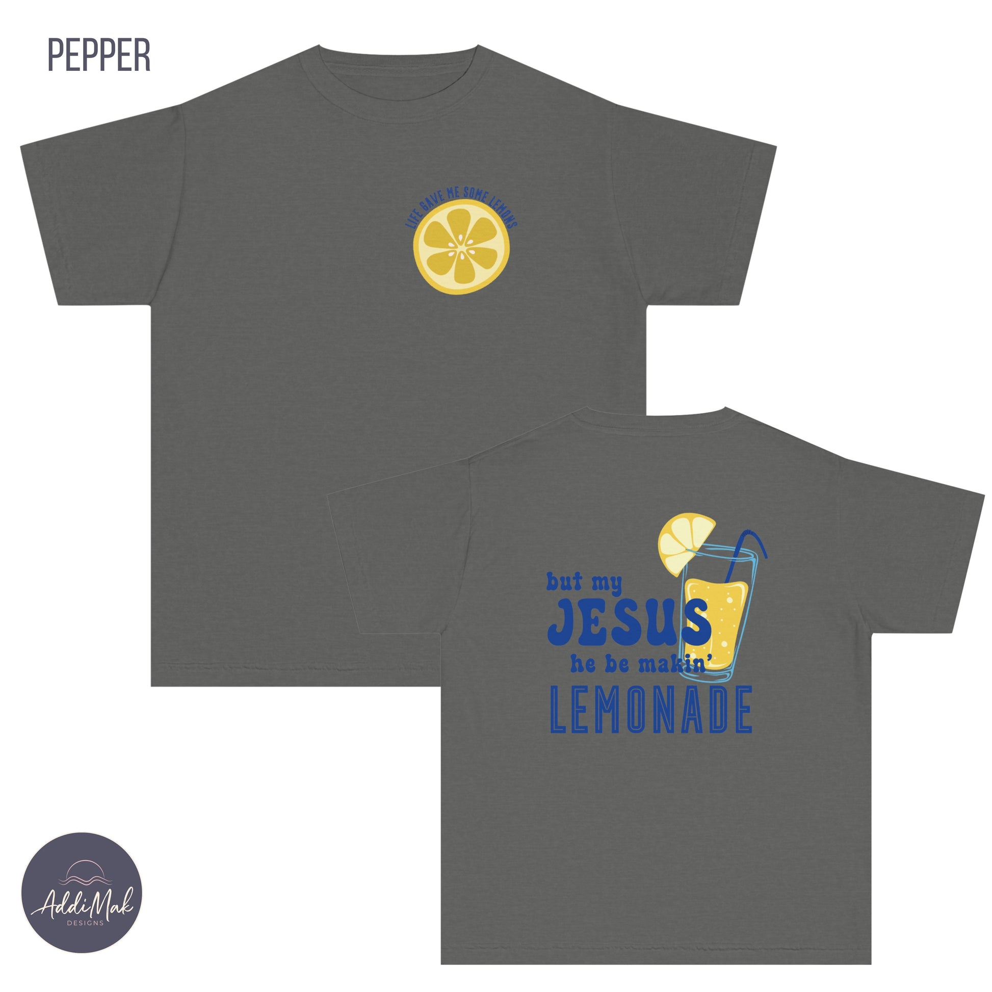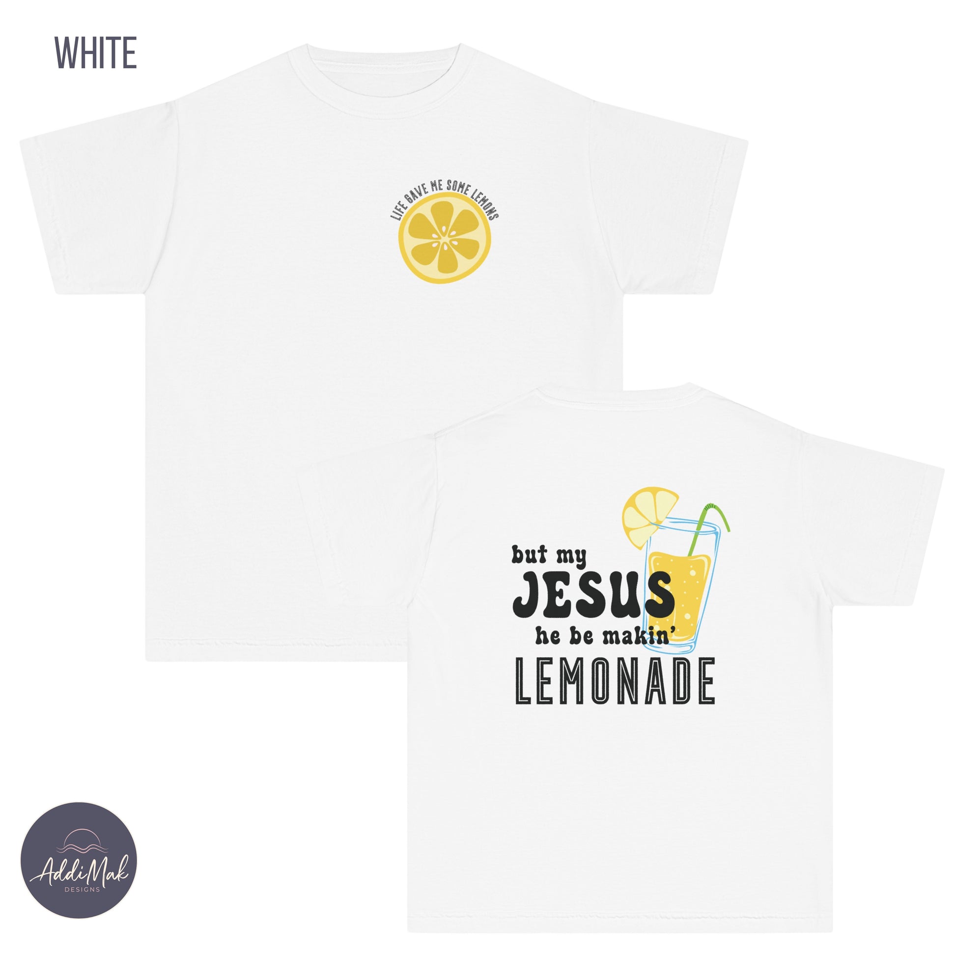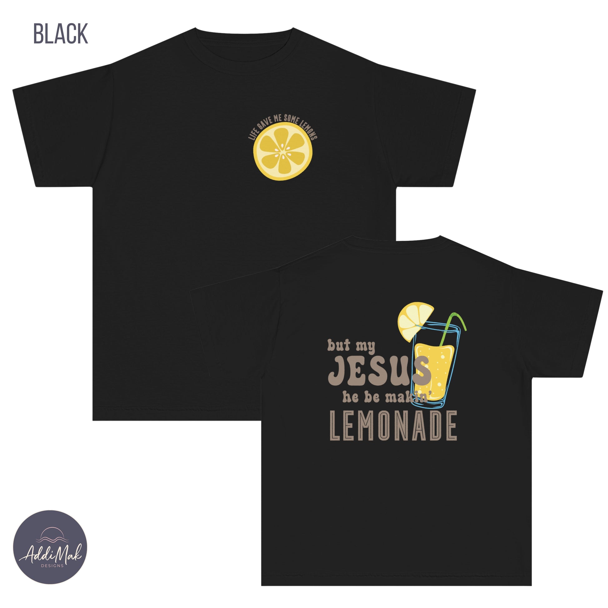 When life hands you lemons, turn it into something sweet — and this tee is the perfect reminder. 🍋 The front features a bright lemon slice and the words “Life Gave Me Some Lemons”, while the back brings the joy with a tall glass of lemonade and “but my JESUS he be makin’ LEMONADE” in a playful, faith-filled design. Made for all-day comfort and endless wear, this youth tee is soft, breathable, and just the right mix of trendy and meaningful. Perfect for school days, church events, or just hanging out, it’s a cheerful little faith statement your kiddo will love to wear (and you’ll love seeing them in).