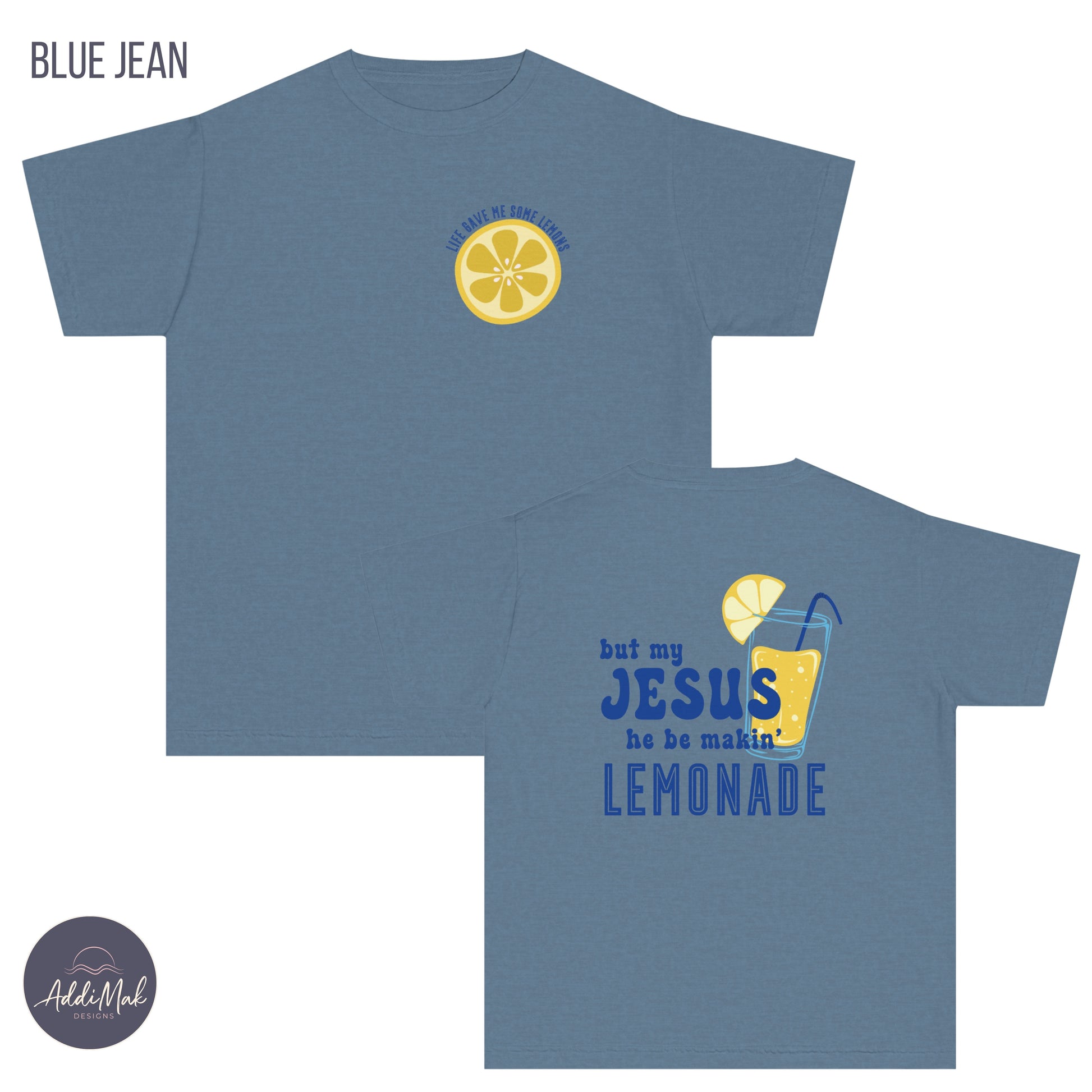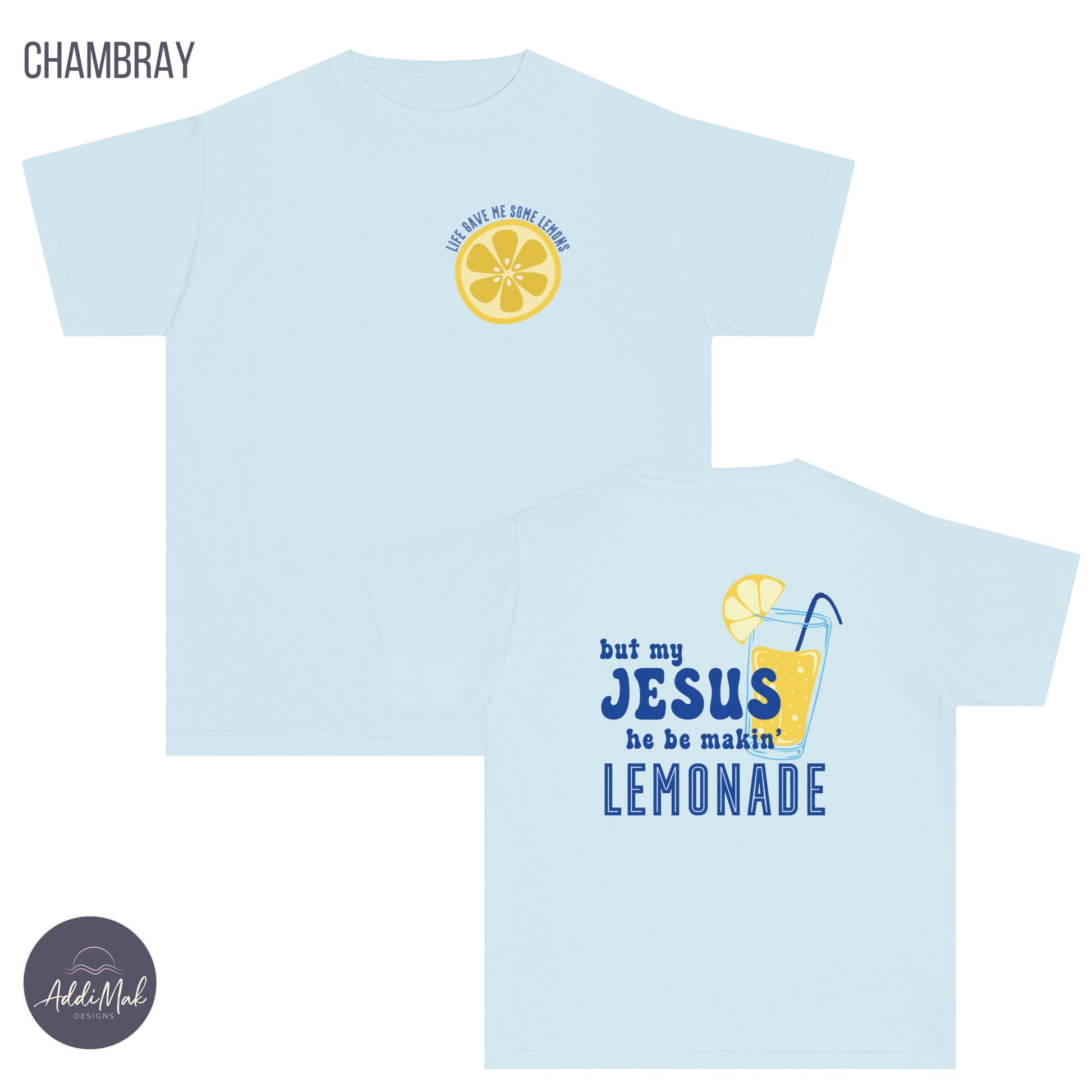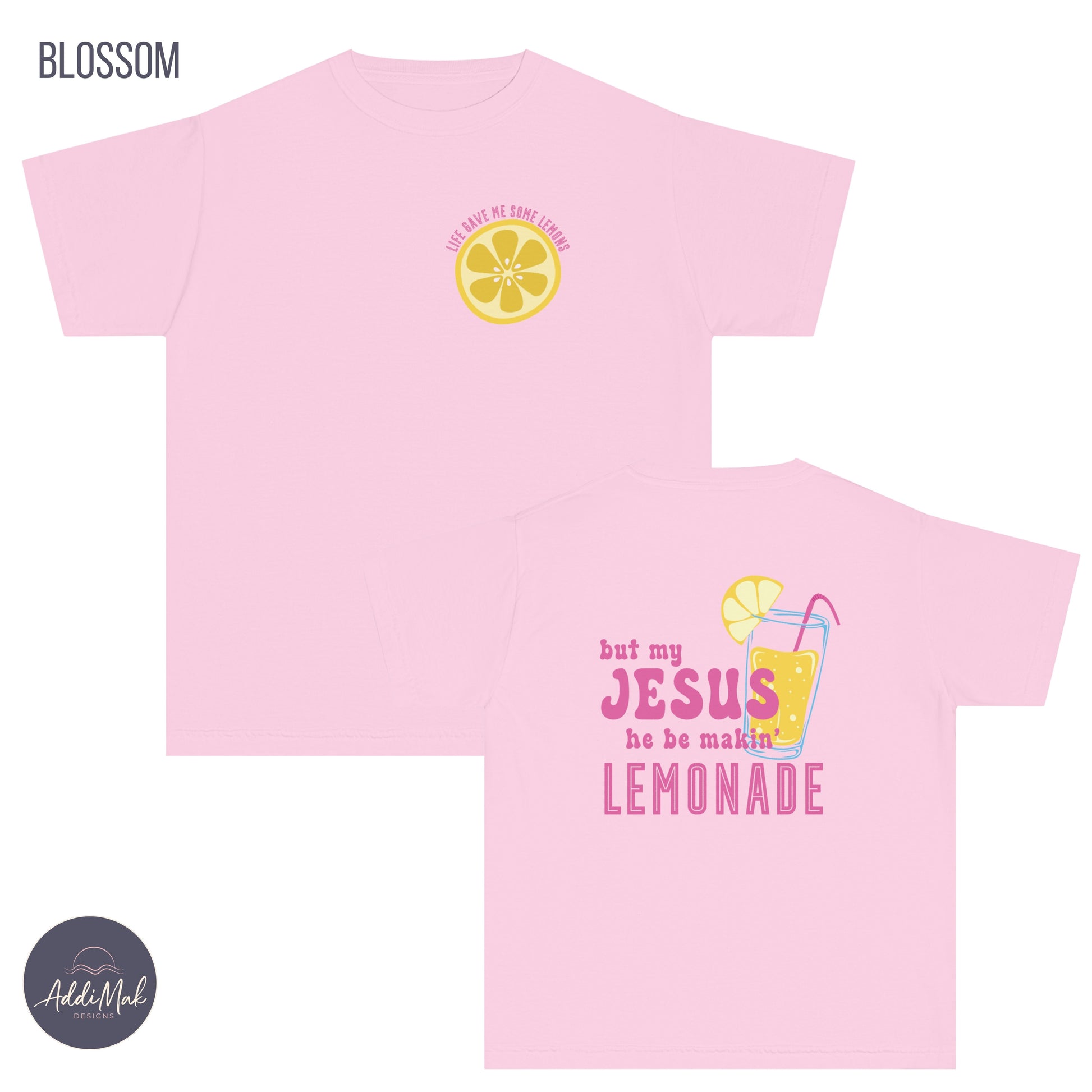When life hands you lemons, turn it into something sweet — and this tee is the perfect reminder. 🍋 The front features a bright lemon slice and the words “Life Gave Me Some Lemons”, while the back brings the joy with a tall glass of lemonade and “but my JESUS he be makin’ LEMONADE” in a playful, faith-filled design. Made for all-day comfort and endless wear, this youth tee is soft, breathable, and just the right mix of trendy and meaningful. Perfect for school days, church events, or just hanging out, it’s a cheerful little faith statement your kiddo will love to wear (and you’ll love seeing them in).