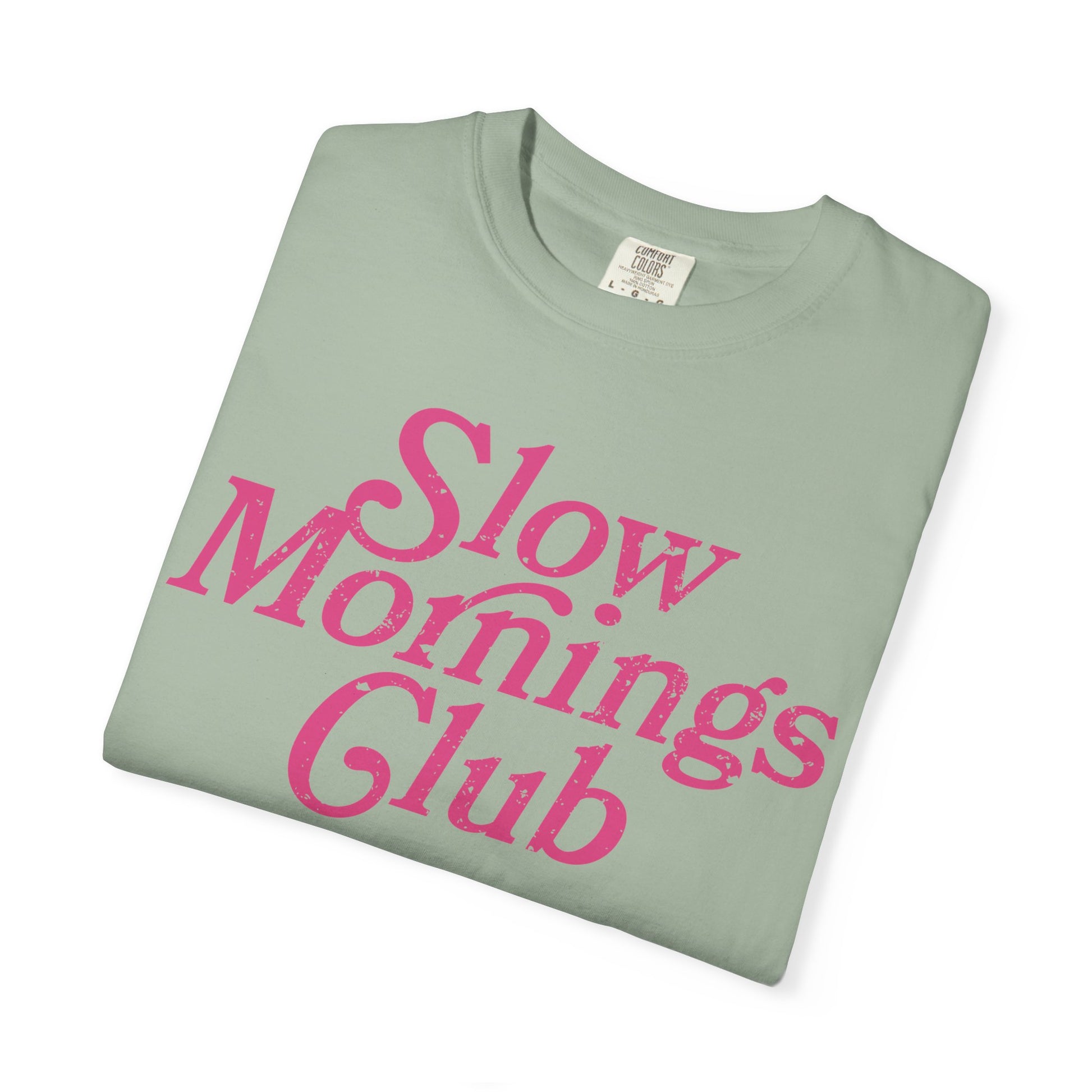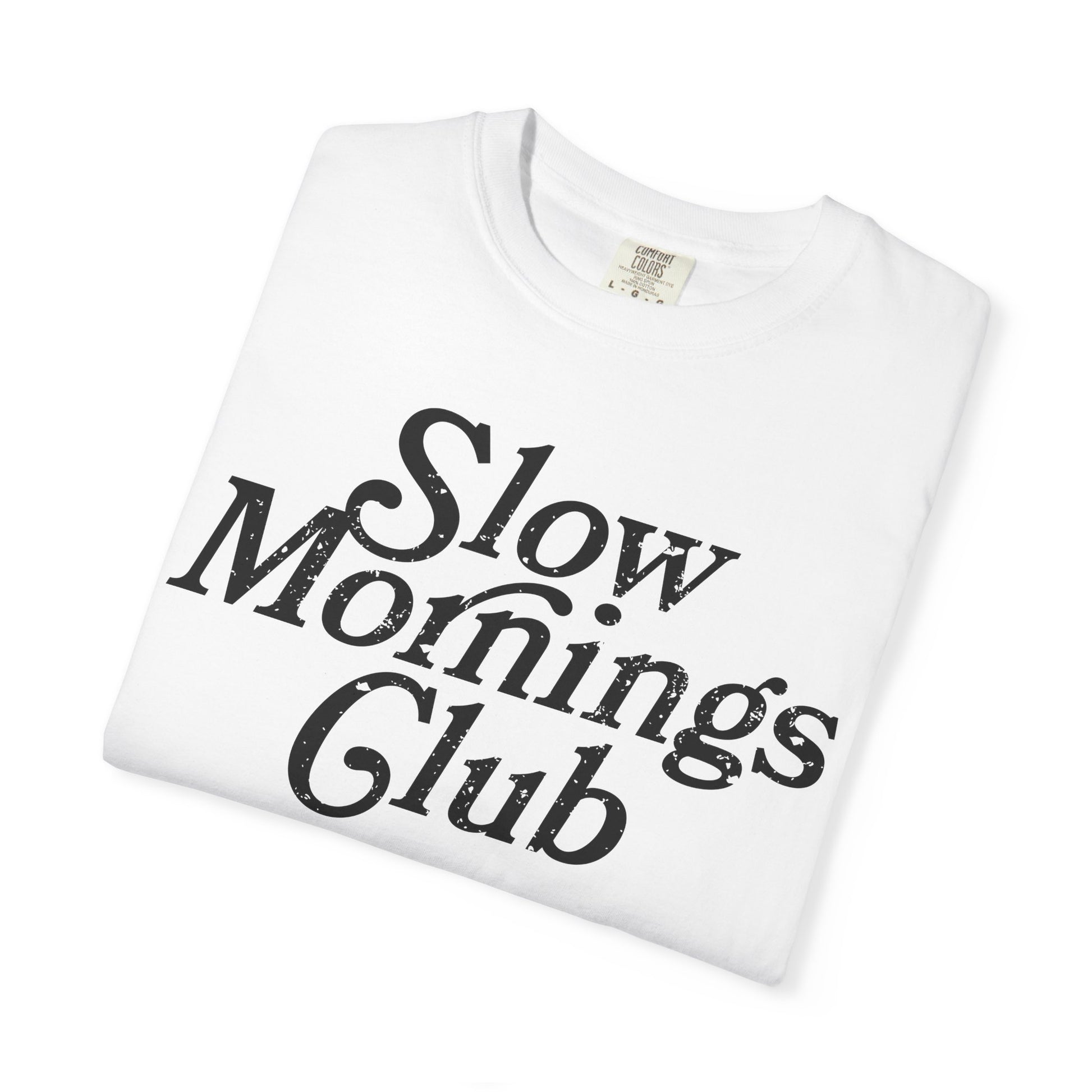 Our Slow Mornings Club T-Shirt is for the coffee sippers, book readers, quiet risers, and anyone who believes mornings should feel cozy — not rushed.
